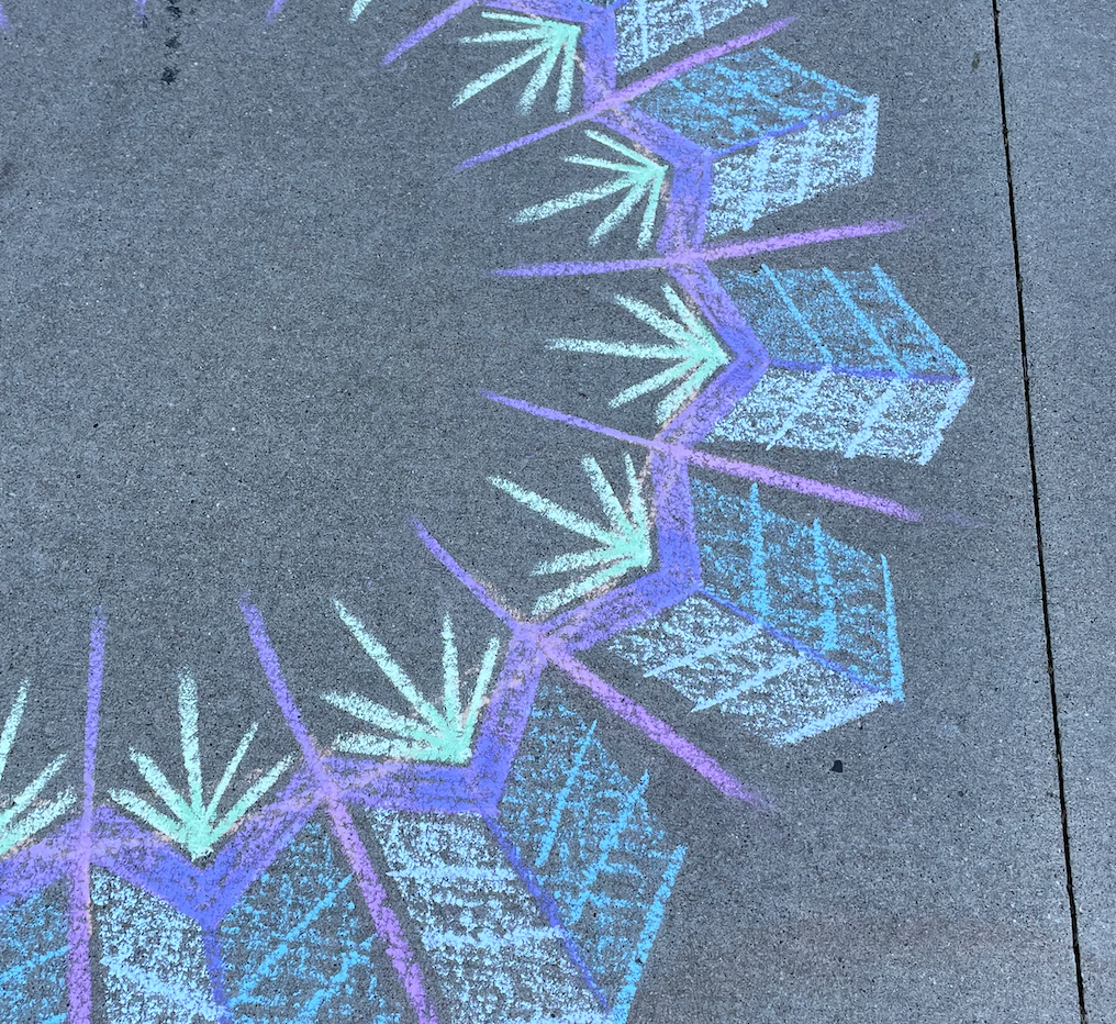 my artwork. marker/pen and paper. chalk and sidewalk.